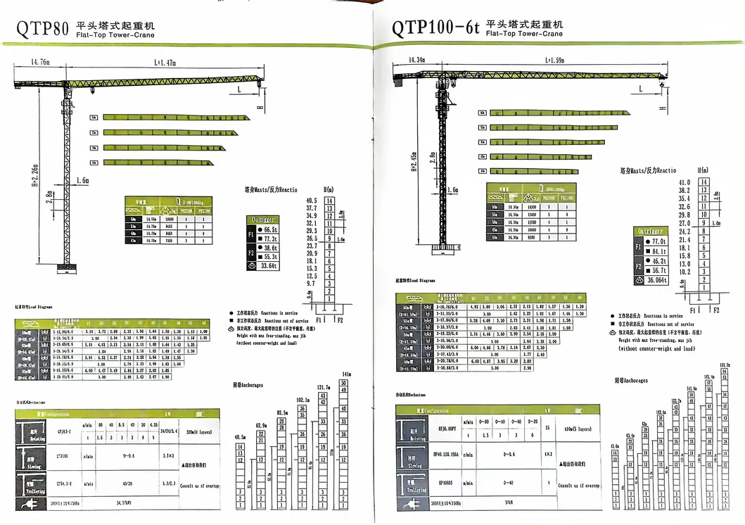 | Model | Head Type | Jib Length (M) | Max Load (TON) | Tip Load (TON) | Independent Height (M) | Max Height | Mast Section |
